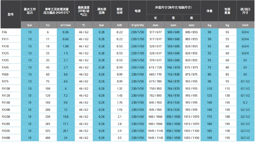 Доступан је широк асортиман сушача ваздуха за различите индустрије и примене са тачкама росе до -70°Ц/-100°Ф.