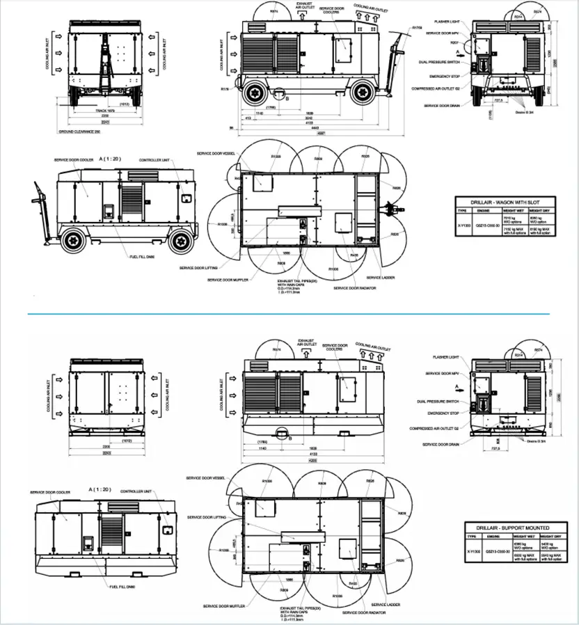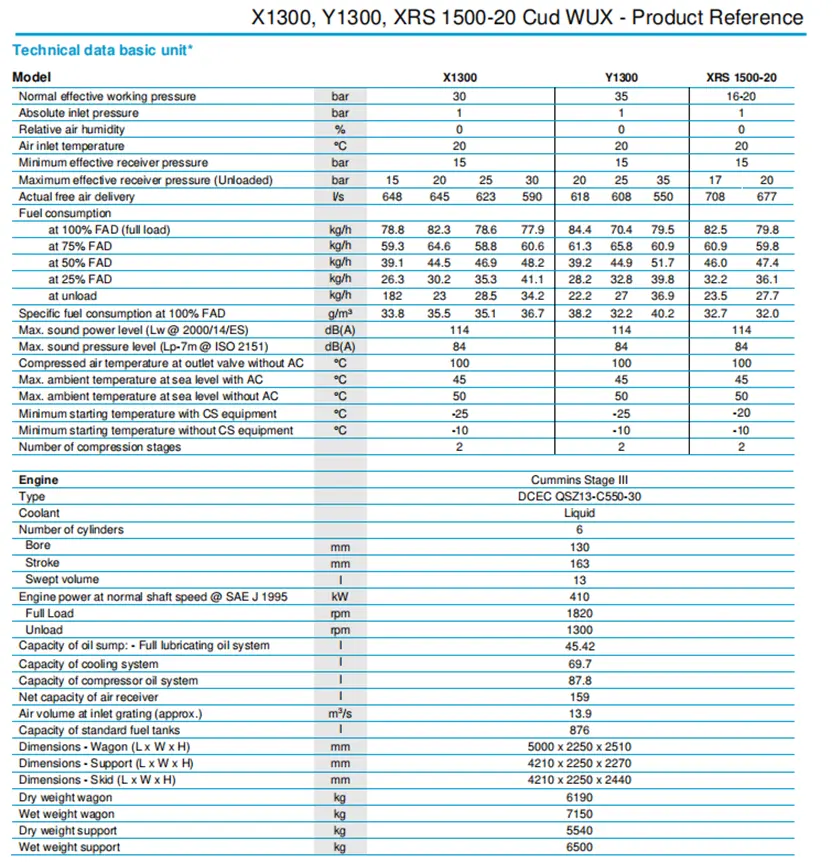 Атлас Цопцо Кс1300, И1300 и КСРС 1500-20 су пригушени, двостепени вијчани компресори са убризгавањем уља, погоњени течним хлађењем, шестоцилиндрични Цумминс дизел мотор.